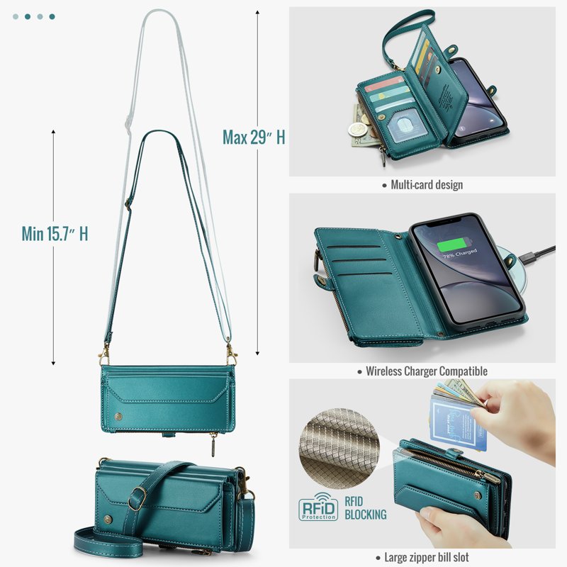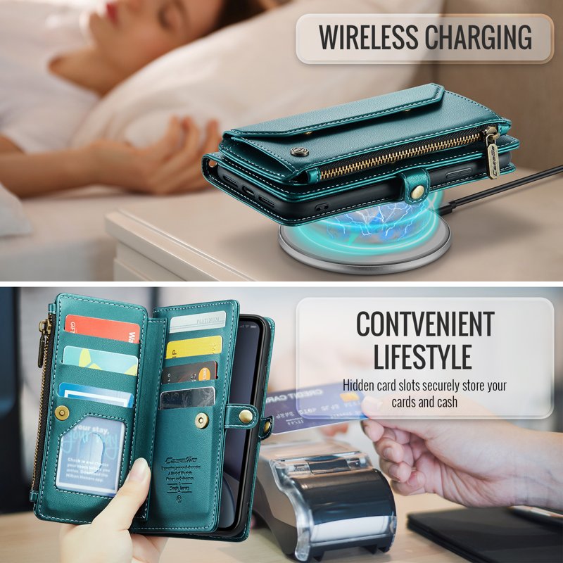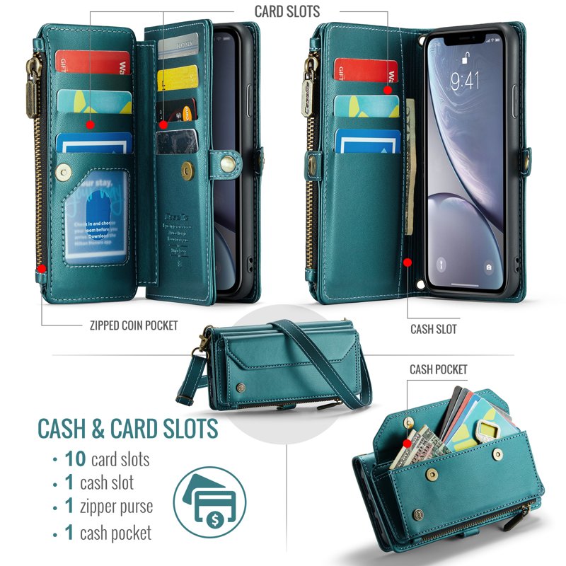 - Generösa kort- och kontantfack - Innehåller 10 kortfack, 1 kontantfack, 1 dragkedjefack och en myntficka för organiserad förvaring.