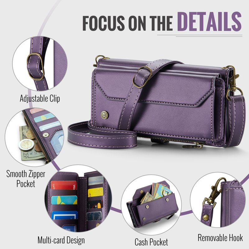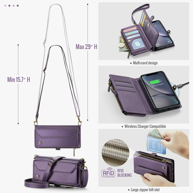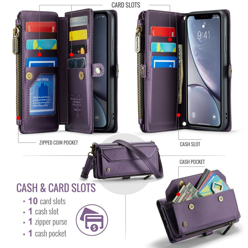 - Generösa kort- och kontantfack: Innehåller 10 kortfack, 1 kontantfack, 1 dragkedjefack och en myntficka för organiserad förvaring.