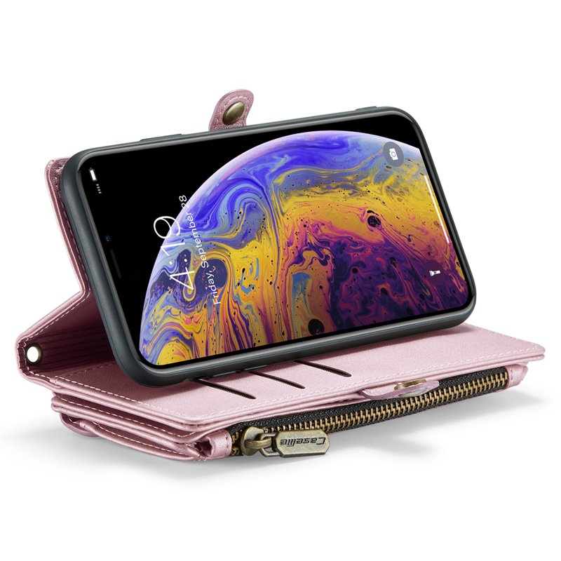 CASEME C36 Läderfodral för iPhone XS Max med kortfack - Rosa