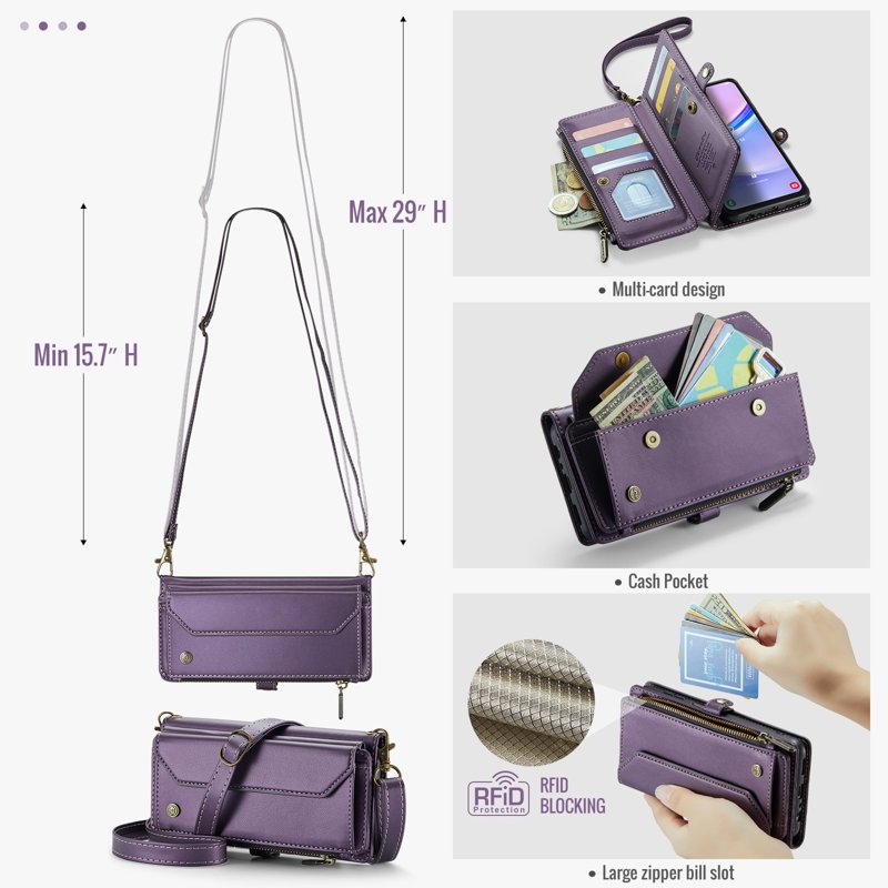 - Generösa kort- och kontantfack - Innehåller 10 kortfack, 1 kontantfack, 1 dragkedjefack och en dedikerad myntficka för organiserad förvaring.