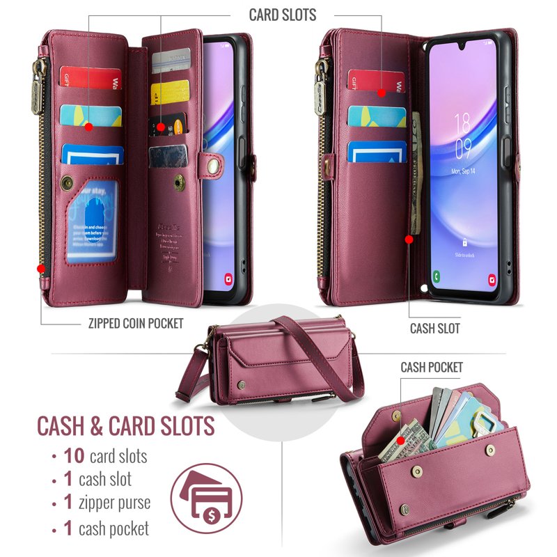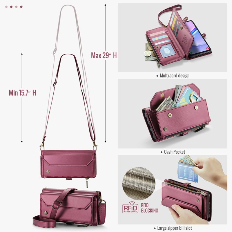 - Generösa kort- och kontantfack - Innehåller 10 kortfack, 1 kontantfack, 1 dragkedjefack och en myntficka för organiserad förvaring.