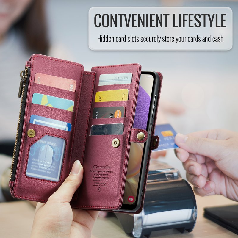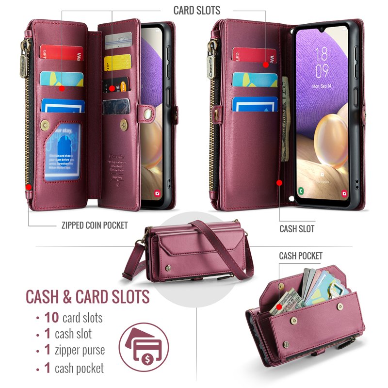 - Generösa kort- och kontantfack - Innehåller 10 kortfack, 1 kontantfack, 1 dragkedjefack och en myntficka för organiserad förvaring.