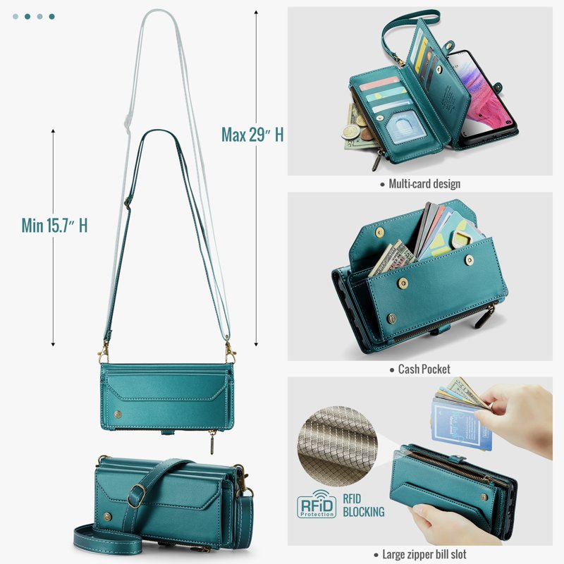 - Generösa kort- och kontantfack - Innehåller 10 kortfack, 1 kontantfack, 1 dragkedjefack och en myntficka för organiserad förvaring.