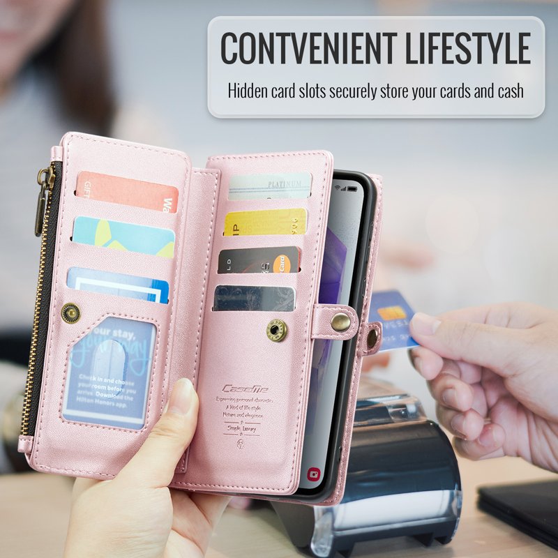 • Generösa kort- och kontantfack - Innehåller 10 kortfack, 1 kontantfack, 1 ficka med dragkedja och en myntficka för organiserad förvaring.