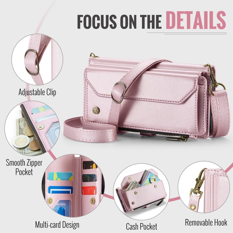 • Generösa kort- och kontantfack - Innehåller 10 kortfack, 1 kontantfack, 1 dragkedjefack och en myntficka för organiserad förvaring.
