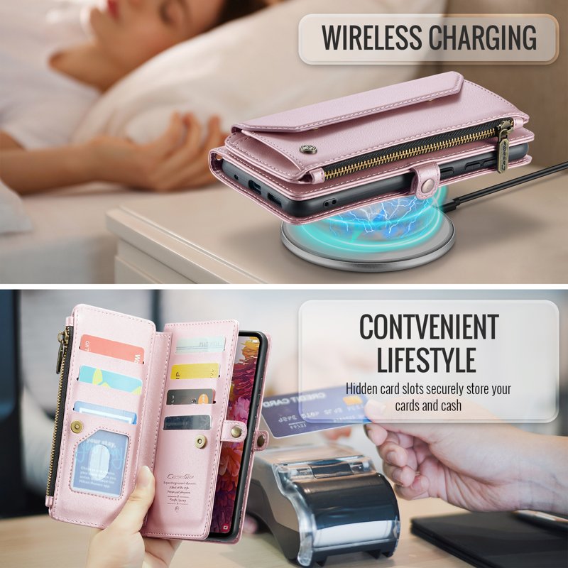 - Generösa kort- och kontantslots: Innehåller 10 kortfack, 1 kontantfack, 1 dragkedjefack och en myntficka för organiserad förvaring.