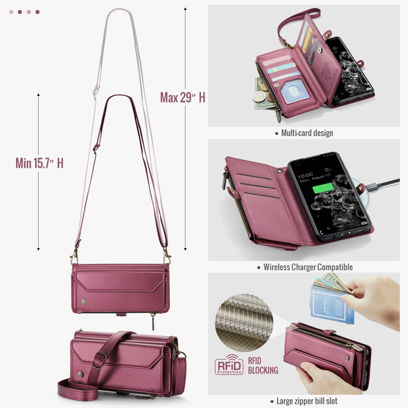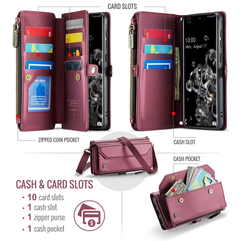 - Generösa kort- och kontantfack - Innehåller 10 kortfack, 1 kontantfack, 1 dragkedjefack och en myntficka för organiserad förvaring.