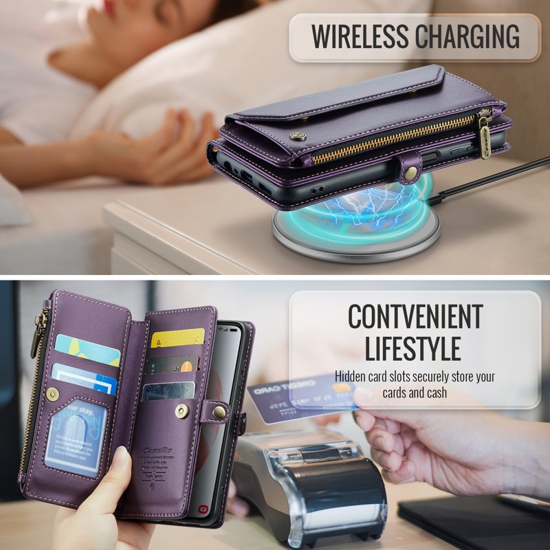 - Generösa kort- och kontantfack: Innehåller 10 kortfack, 1 kontantfack, 1 dragkedjefack och en myntficka för organiserad förvaring.