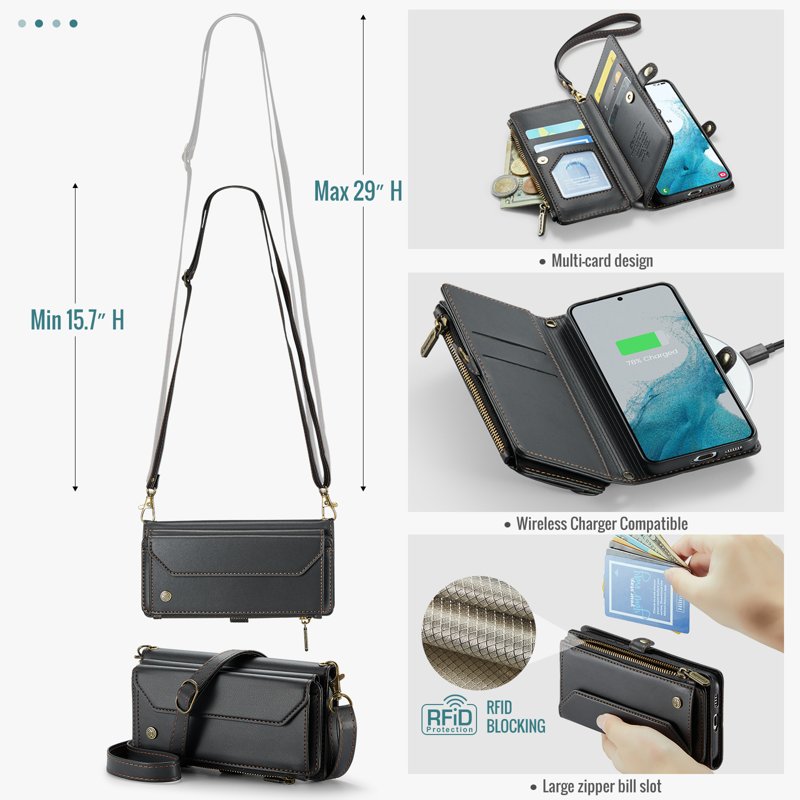 • Generösa kort- och kontantfack - Innehåller 10 kortfack, 1 kontantfack, 1 dragkedjefack och en dedikerad myntficka för organiserad förvaring.