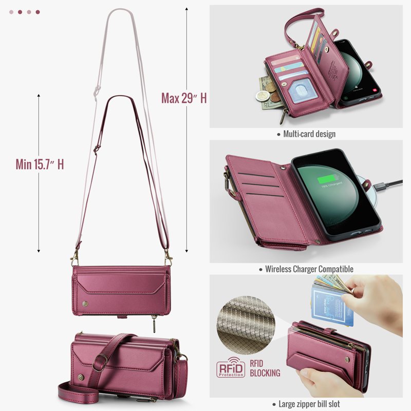 - Rymliga kort- och kontantfack: Innehåller 10 kortfack, 1 kontantfack, 1 dragkedjefack och en dedikerad myntficka för organiserad förvaring.