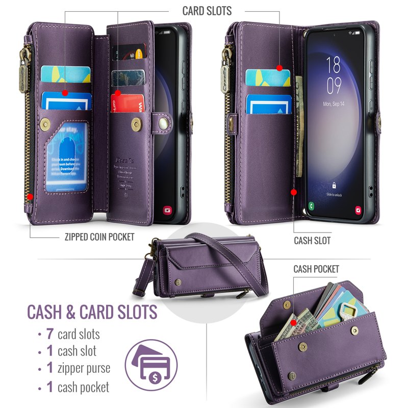 - Generösa kort- och kontantfack - Innehåller 10 kortfack, 1 kontantfack, 1 dragkedjefack och en myntficka för organiserad förvaring.