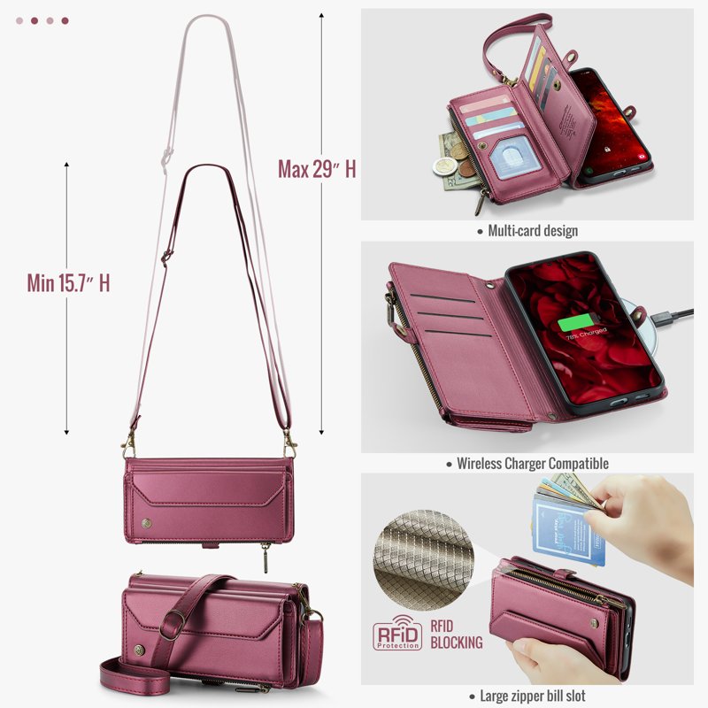 - Generösa kort- och kontantfack - Innehåller 10 kortfack, 1 kontantfack, 1 dragkedjefack och en myntficka för organiserad förvaring.