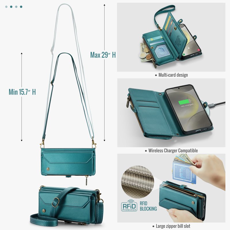 • Generösa kort- och kontantfack: Innehåller 10 kortfack, 1 kontantfack, 1 dragkedjefack och en myntficka för organiserad förvaring.