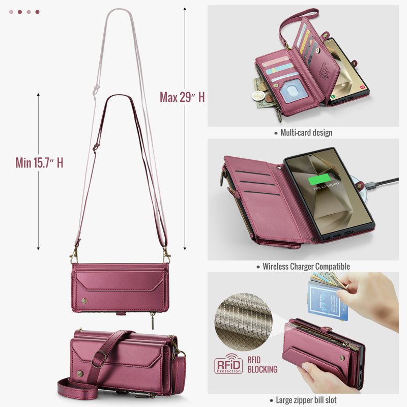CASEME C36 Läderfodral för Samsung Galaxy S24 Ultra - Vinröd