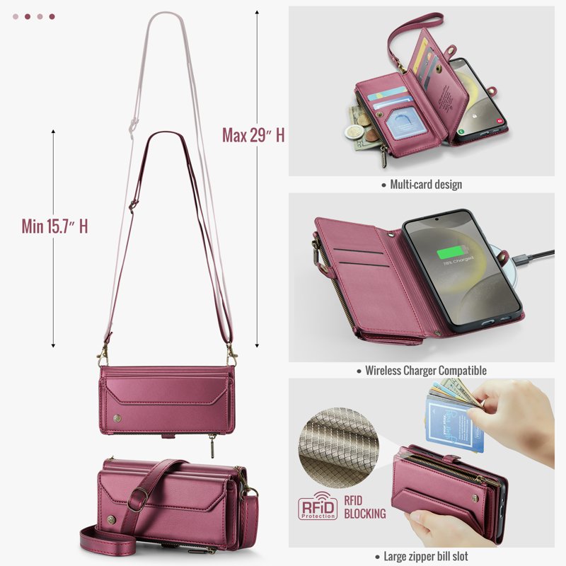 - Generösa kort- och kontantfack - Innehåller 10 kortfack, 1 kontantfack, 1 dragkedjefack och en dedikerad myntficka för organiserad förvaring.