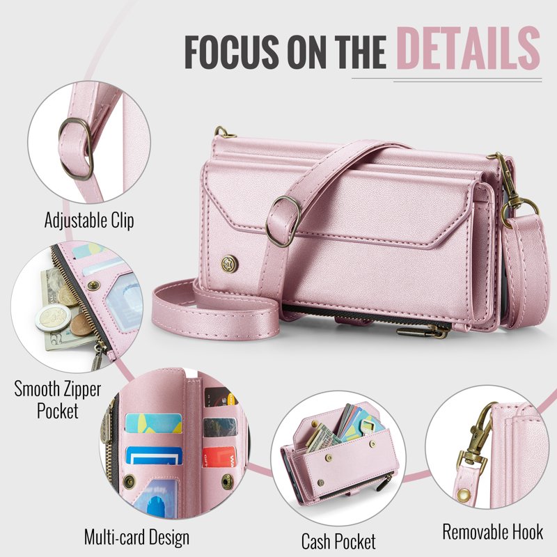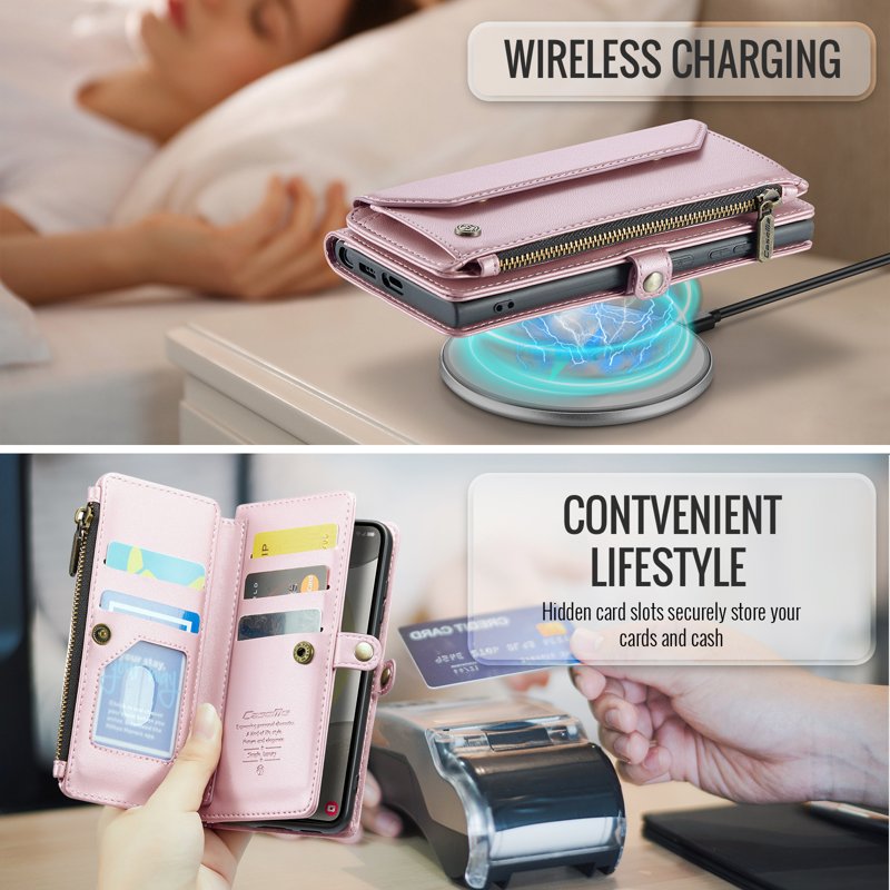 - Generösa kort- och kontantfack - Innehåller 10 kortfack, 1 kontantfack, 1 dragkedjefack och en myntficka för organiserad förvaring.