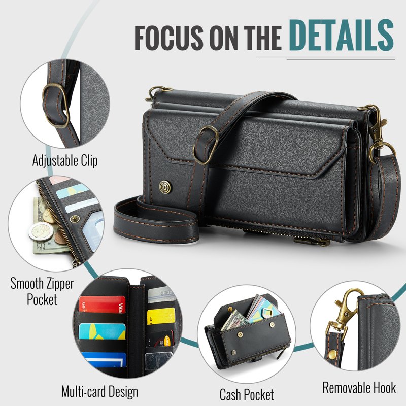 - Generösa kort- och kontantfack - Innehåller 10 kortfack, 1 kontantfack, 1 dragkedjefack och en myntficka för organiserad förvaring.