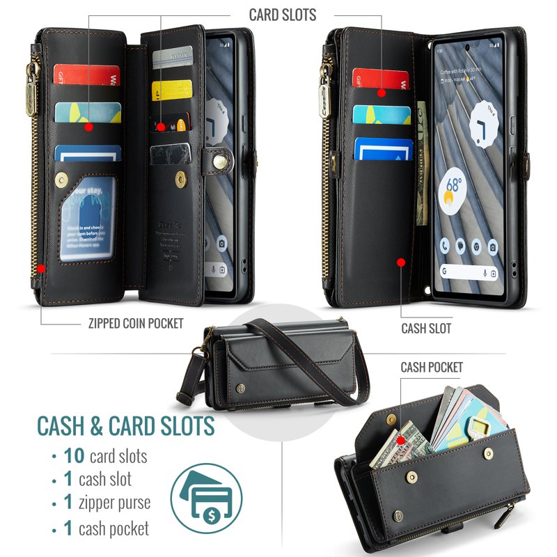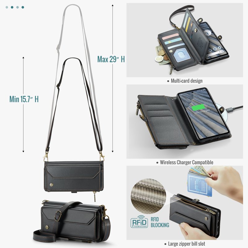 - Generösa kort- och kontantfack - Innehåller 10 kortfack, 1 kontantfack, 1 dragkedjefack och en myntficka för organiserad förvaring.