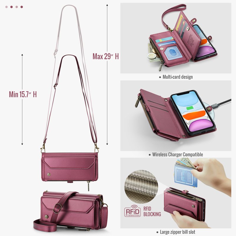 - Generösa kort- och kontantfack - Innehåller 10 kortfack, 1 kontantfack, 1 dragkedjefack och en myntficka för organiserad förvaring.