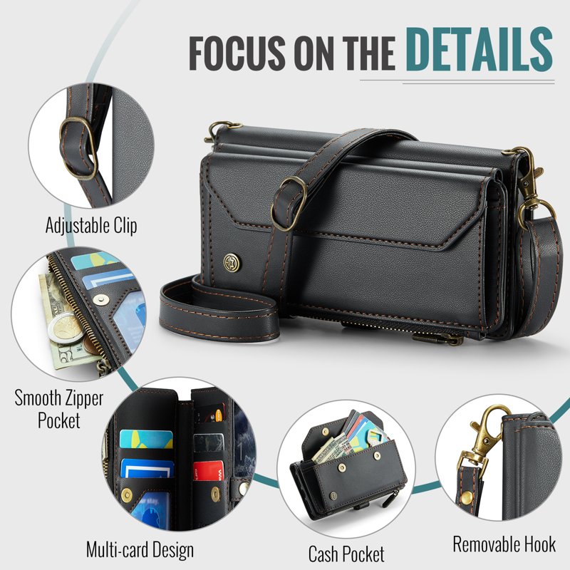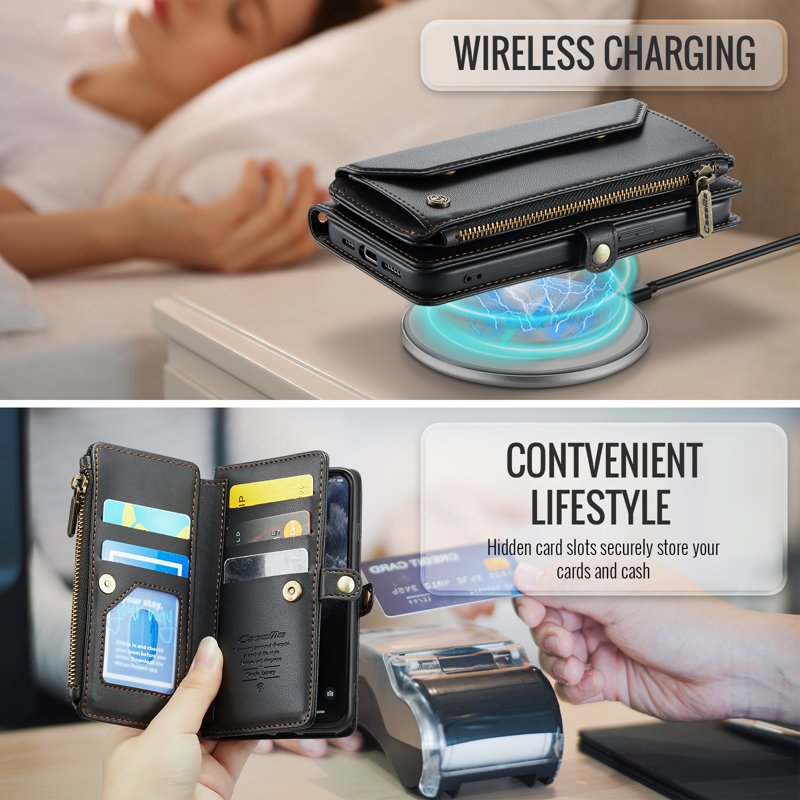- Generösa kort- och kontantfack - Innehåller 10 kortfack, 1 kontantfack, 1 dragkedjefack och en myntficka för organiserad förvaring.