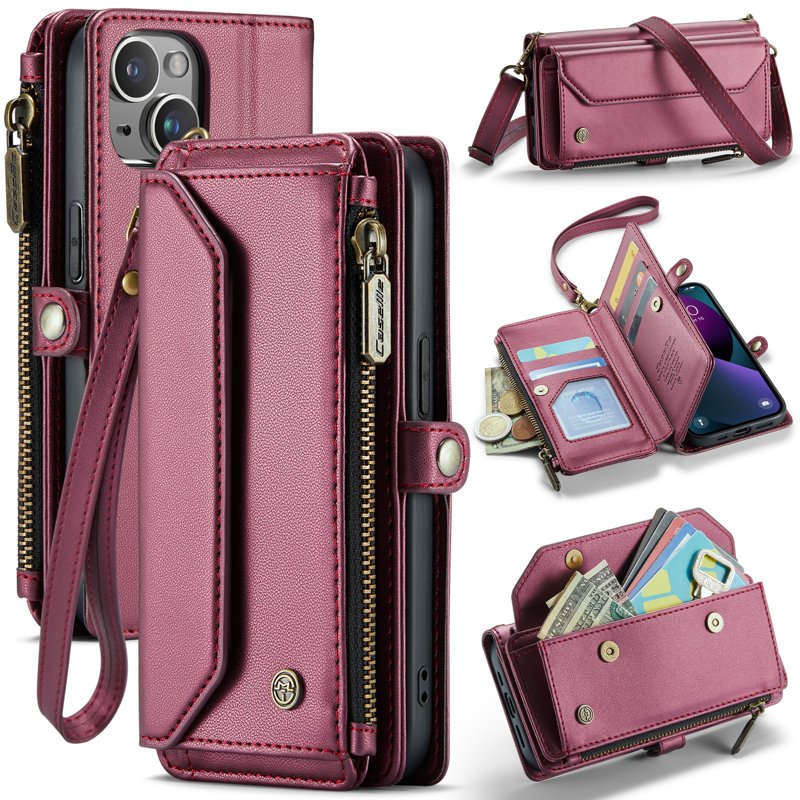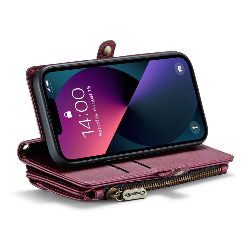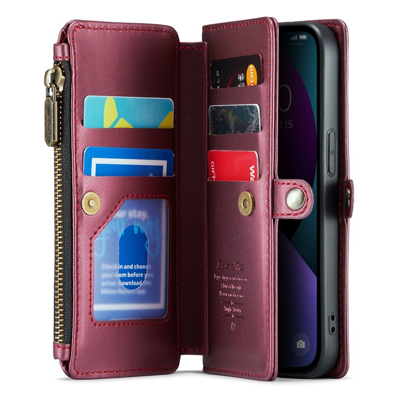 CASEME C36 Läderfodral till iPhone 13 med kortfack - Vinröd