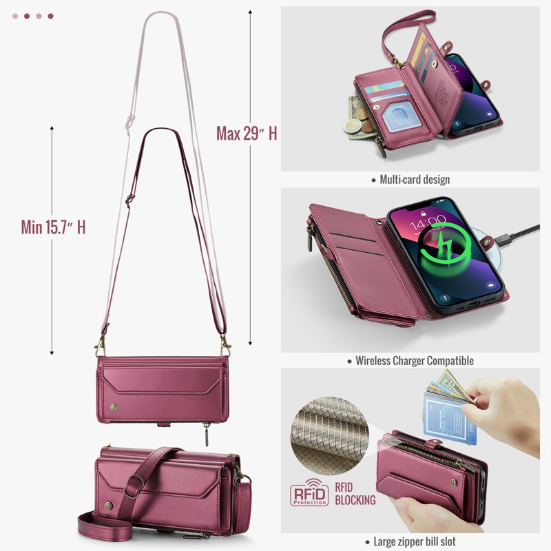 • Generösa kort- och kontantfack - Innehåller 10 kortfack, 1 kontantfack, 1 dragkedjefack och en dedikerad myntficka för organiserad förvaring.