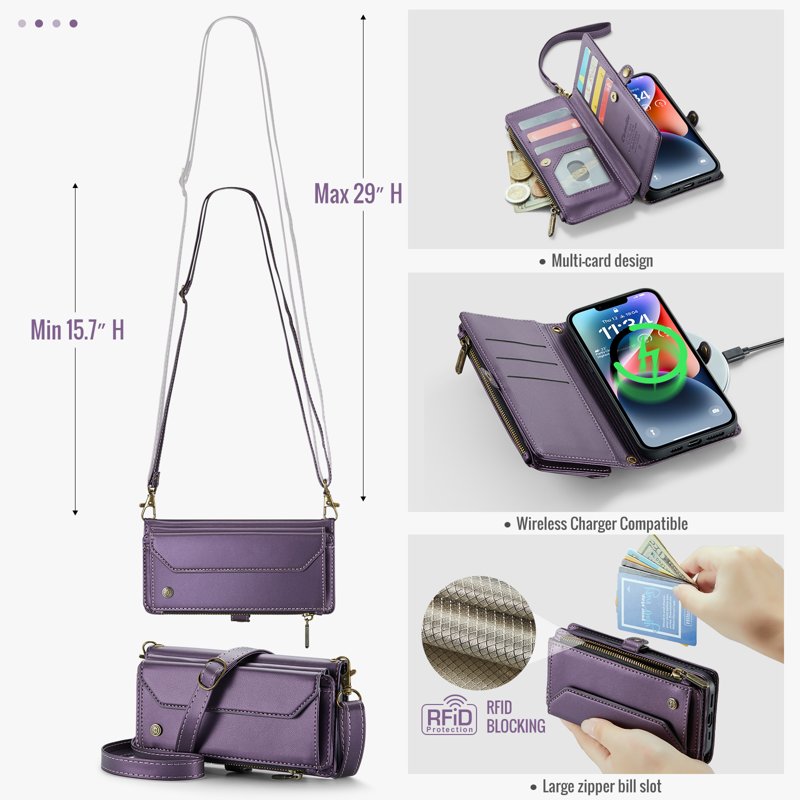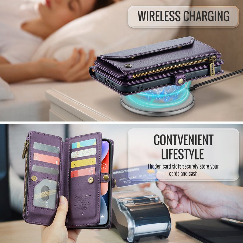 - Generösa kort- och kontantfack: Innehåller 10 kortfack, 1 kontantfack, 1 dragkedjefack och en dedikerad myntficka för organiserad förvaring.
