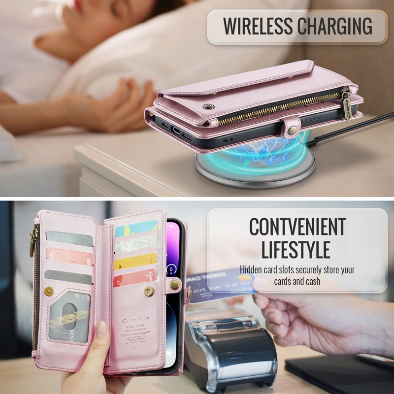 - Generösa kort- och kontantfack - Innehåller 10 kortfack, 1 kontantfack, 1 dragkedjefack och en myntficka för organiserad förvaring.