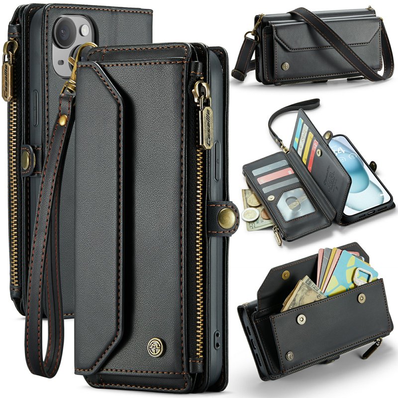 CASEME C36 Läderfodral till iPhone 15 Plus med kortfack - Svart