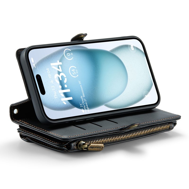 Handla denna produkt CASEME C36 Läderfodral till iPhone 15 Plus med kortfack - Svart