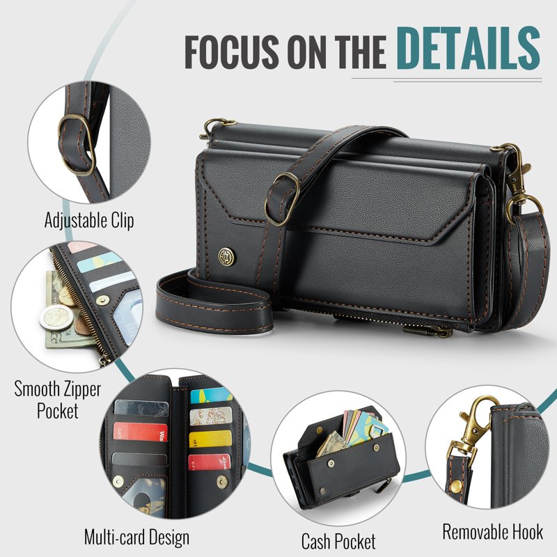 • Generösa kort- och kontantfack - Innehåller 10 kortfack, 1 kontantfack, 1 dragkedjefack och en myntficka för organiserad förvaring.
