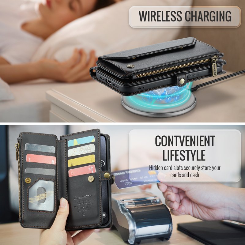 - Generösa kort- och kontantfack - Innehåller 10 kortfack, 1 kontantfack, 1 dragkedjefack och en myntficka för organiserad förvaring.