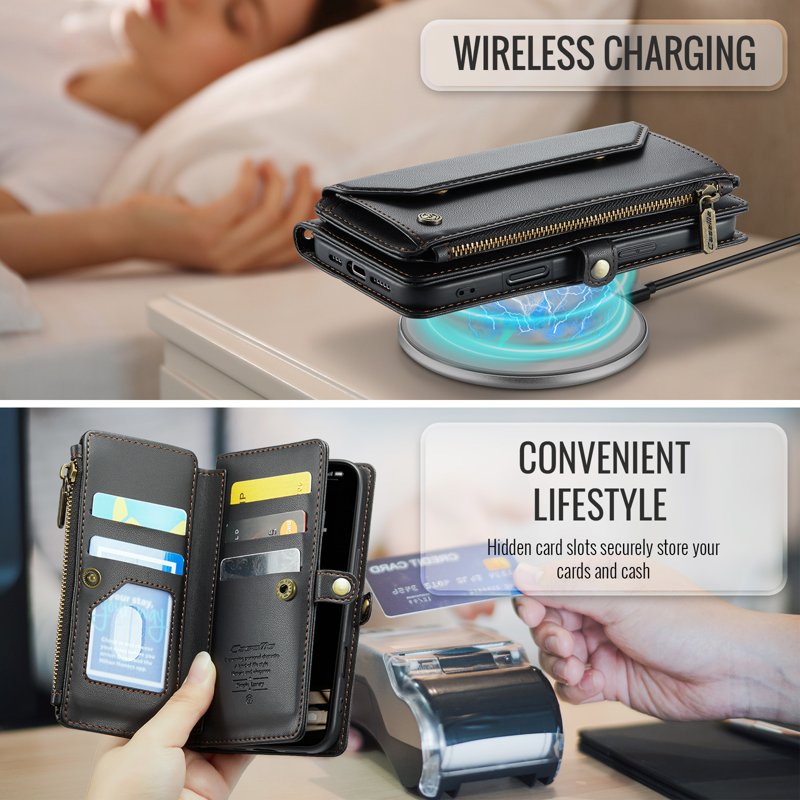 - Generösa kort- och kontantfack - Innehåller 10 kortfack, 1 kontantfack, 1 dragkedjefack och en myntficka för organiserad förvaring.