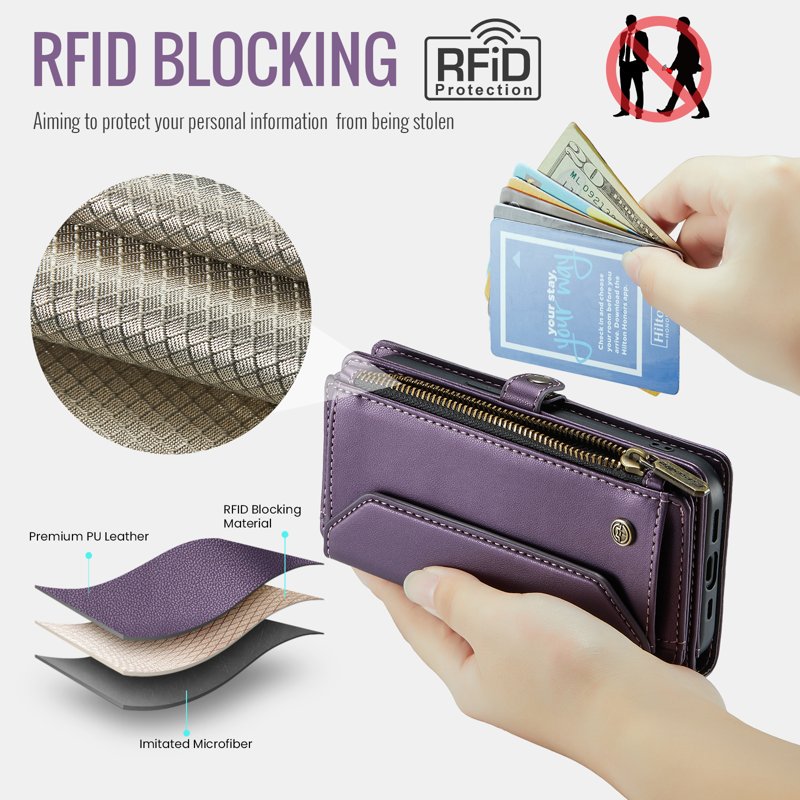 - Generösa kort- och kontantfack - Innehåller 10 kortfack, 1 kontantfack, 1 dragkedjefack och en dedikerad myntficka för organiserad förvaring.