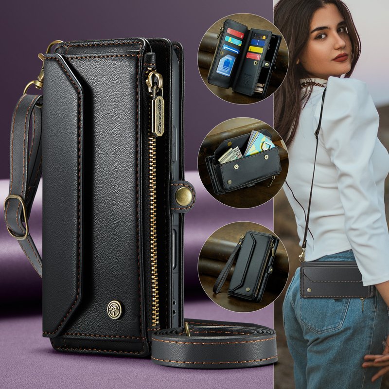 - Generösa kort- och kontantfack - Innehåller 10 kortfack, 1 kontantfack, 1 dragkedjefack och en dedikerad myntficka för organiserad förvaring.