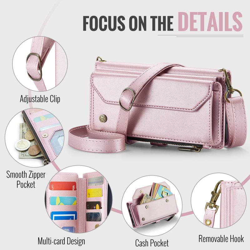 - Generösa kort- och kontantfack - Innehåller 10 kortfack, 1 kontantfack, 1 dragkedjefack och en myntficka för organiserad förvaring.