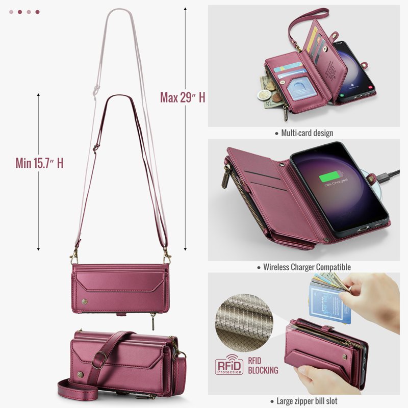 - Generösa kort- och kontantfack: Innehåller 10 kortfack, 1 kontantfack, 1 dragkedjefack och en myntficka för organiserad förvaring.