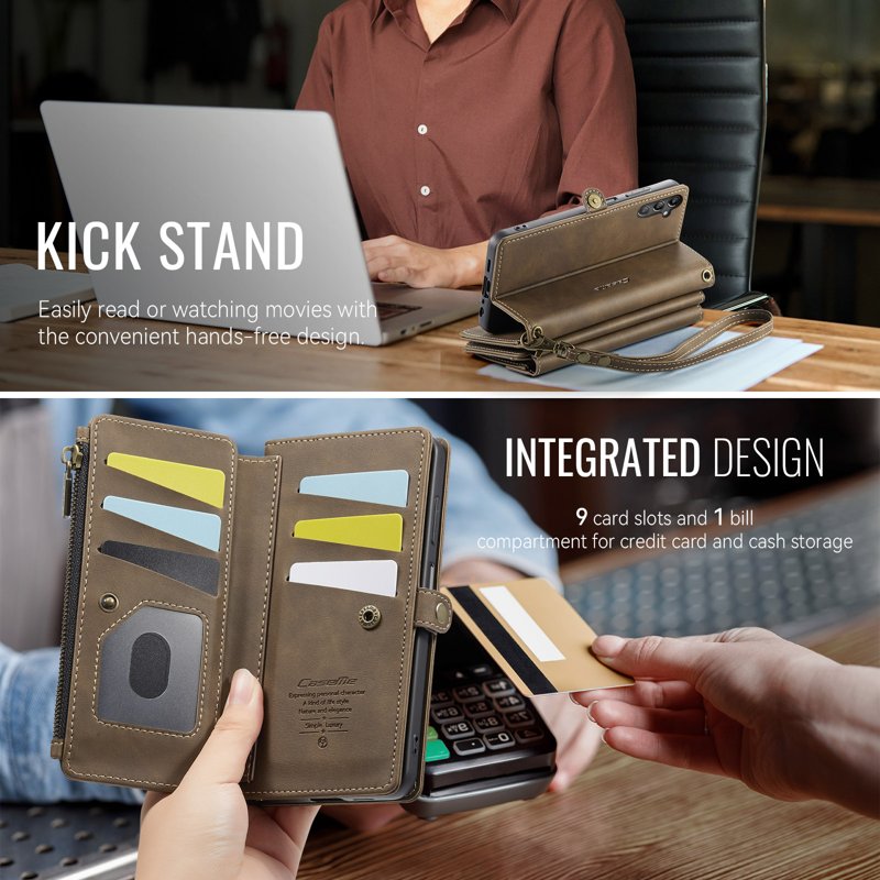- Organiserad plånboksficka: Innehåller 9 kortfack, 1 sedelfack, 1 dragkedjefack och en myntficka för säker förvaring av dina nödvändigheter.