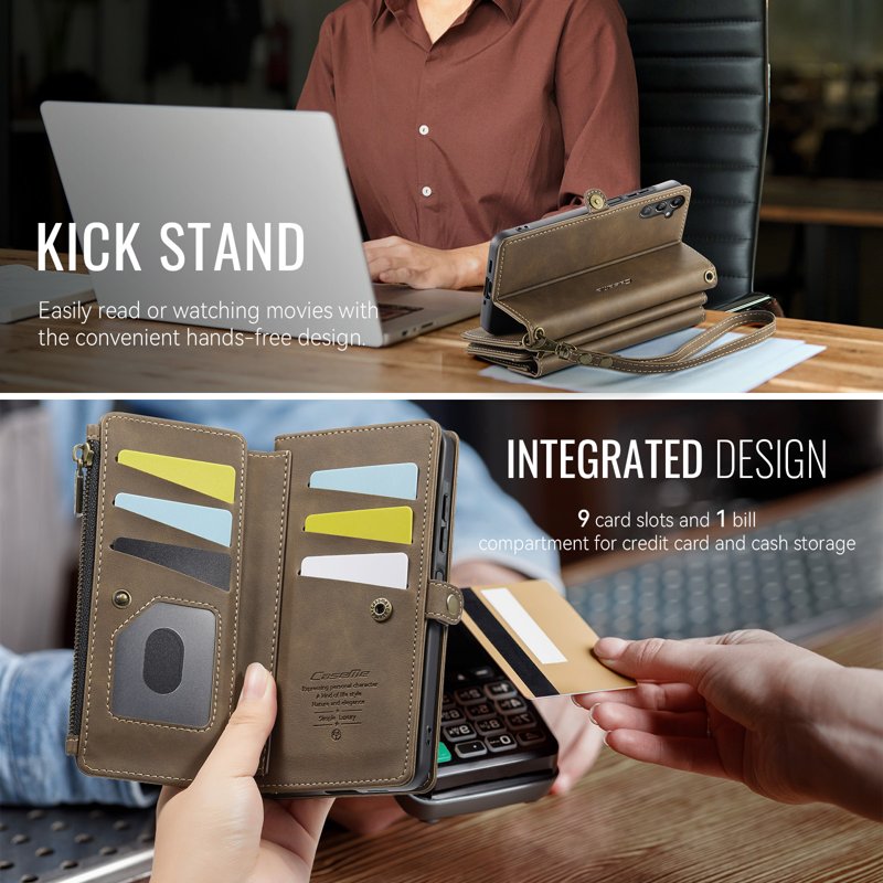 - Organiserad plånboksficka: Innehåller 9 kortfack, 1 sedelfack, 1 dragkedjefack och en myntficka för säker förvaring.