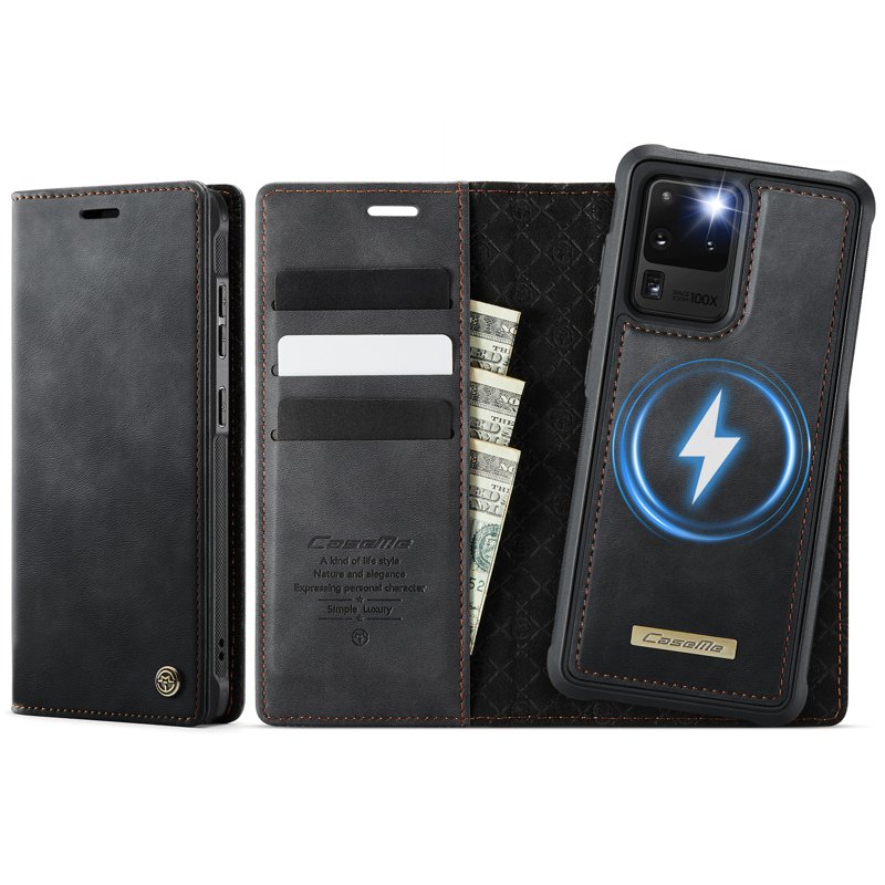 - Magnetisk Avtagbar Plånboksdesign: Inbyggda kortfack och en sedelplats för kreditkort och kontanter. Kan användas som ett skal eller plånbok.