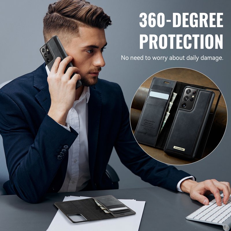 - Magnetisk Avtagbar Plånbok: Inbyggda kortfack och sedelfack för kreditkort och kontanter. Kan användas som ett enskilt skal eller läderfodral.