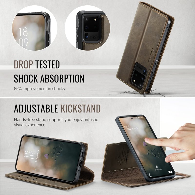 - Magnetisk Avtagbar Plånboksdesign: Inbyggda kortfack och kontantfack för kreditkort och ID. Kan användas som ett enskilt skal eller läderfodral.