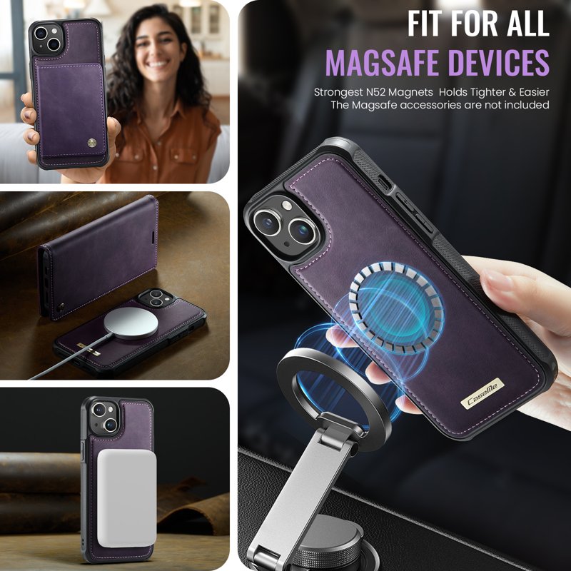 • Magnetisk Avtagbar Plånboksdesign: Inbyggda kortfack och kontantficka för kreditkort och ID.