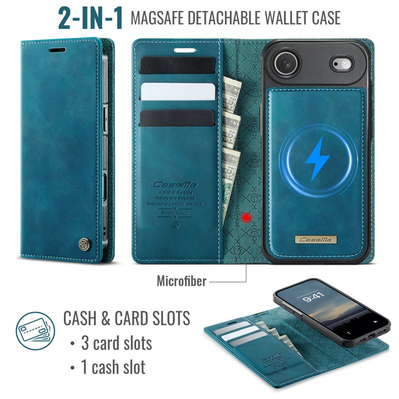 - Magnetisk Avtagbar Plånboksdesign: Inbyggda kortfack och kontantficka för enkel förvaring.