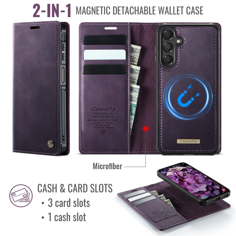 - Magnetisk Avtagbar Plånboksdesign: Inbyggda kortfack och en sedelplats för kreditkort och kontanter. Kan användas som ett enskilt skal eller som ett läderfodral.