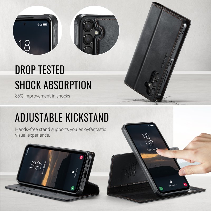 - Premium Material: Hållbart TPU och PU-läder ger ett bekvämt grepp och skydd mot stötar.