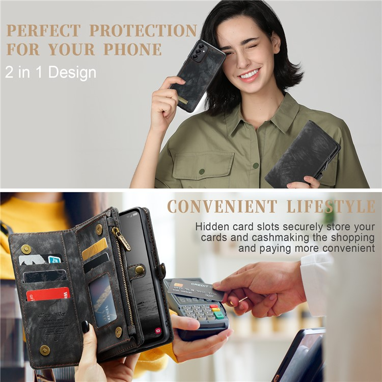 CASEME Galaxy A54 5G Plånboksfodral 008 Series Detachable Pocket Design PU-läder med Stativ - Svart