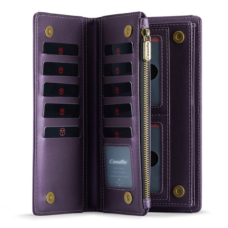 - Organiserad inredning: Innehåller 9 kortfack, 3 fotofack, 2 sedelfack och 1 ficka med dragkedja.