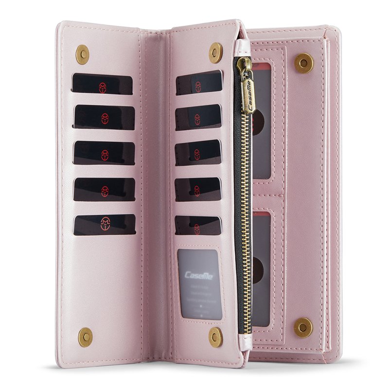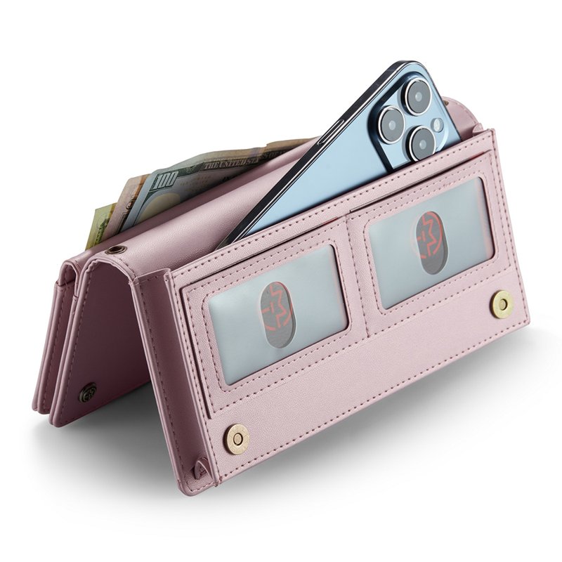 - Organiserad inredning: Innehåller 9 kortfack, 3 fotofack, 2 sedelfack och 1 dragkedjefack för enkel åtkomst till dina saker.