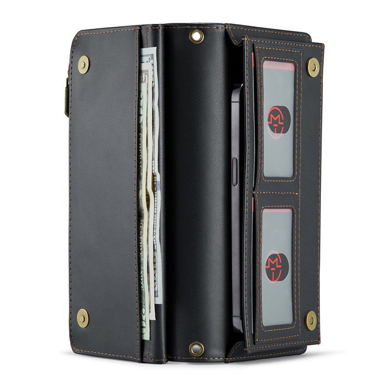 - Organiserad inredning: Innehåller 9 kortfack, 3 fotofack, 2 sedelfack och 1 ficka med dragkedja för enkel åtkomst till dina nödvändigheter.